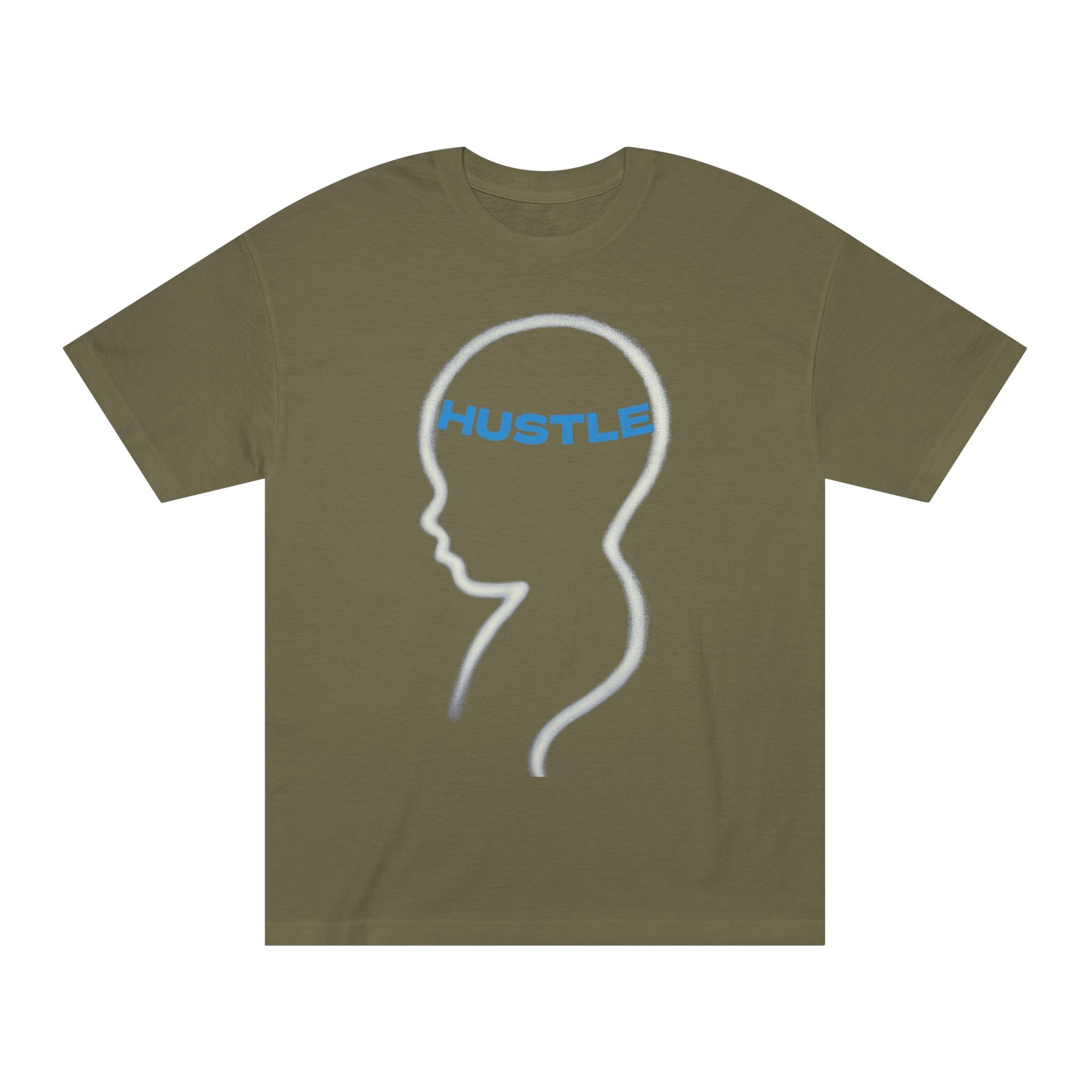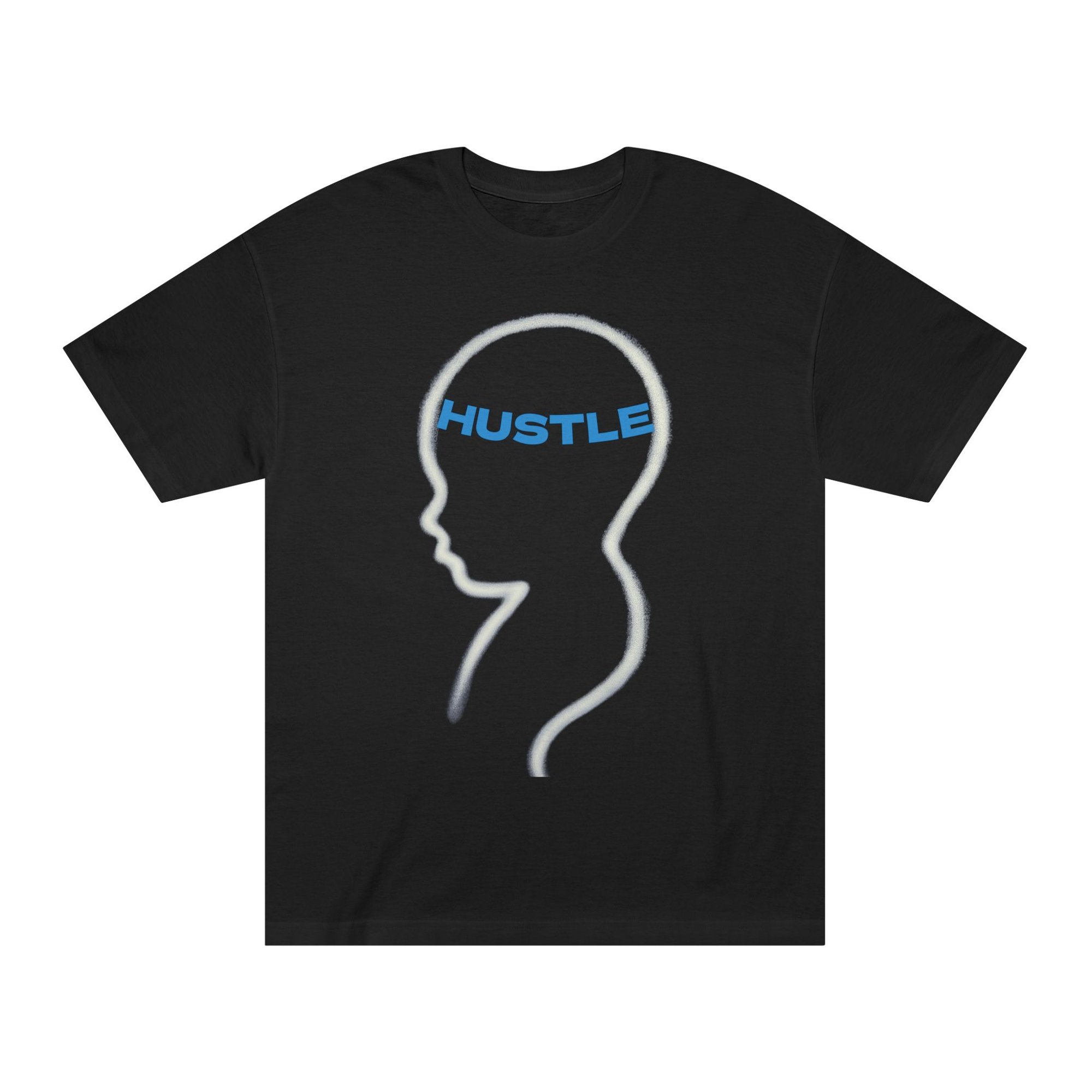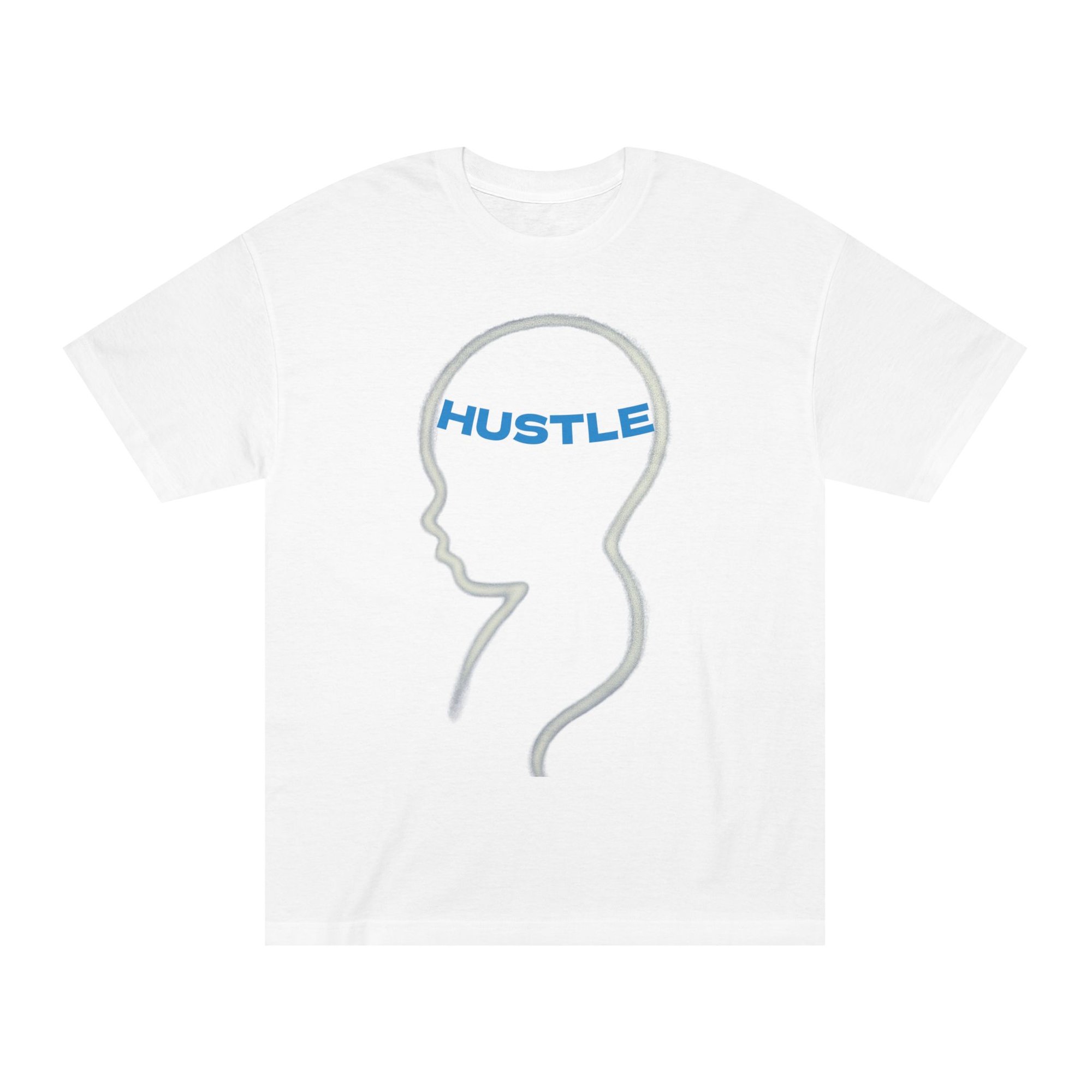 Light, calm, and quietly insistent — this classic tee carries a simple silhouette with the word “HUSTLE” set inside a minimalist head outline. It’s for people who move with intention: late-night creators, side-job builders, and anyone who treats small daily actions like steady progress. Wear it during morning routines, studio sessions, or while brainstorming the next move. The soft midweight fabric and familiar cut keep you comfortable while the understated graphic says what you do without shouting. It layers easily under a jacket or stands on its own during casual meetups and co-working days.